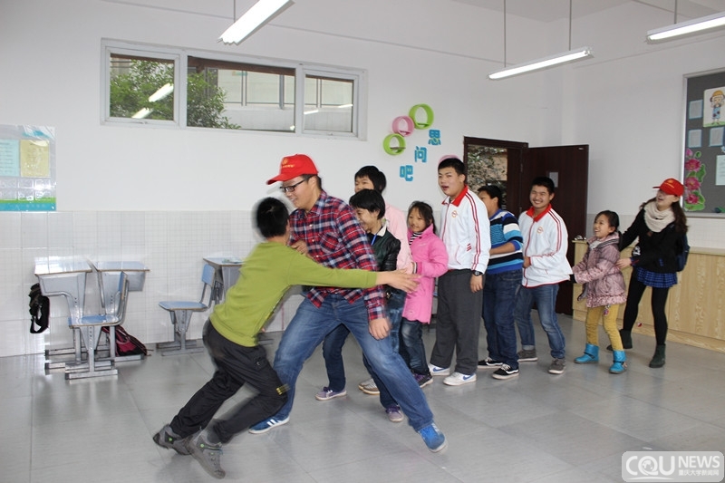 活动当天,志愿者分为六个组,每组约四人,分别进入六个智障班进行传递爱心活动。在活动的前期,志愿者为孩子们演示了一个个有趣的物理小实验,如:“水面浮针”、“装满水的纸盒为什么会转动”、“水制放大镜”、“水为什么不会洒出”等,这一个个小实验让孩子们兴奋不已。同时,志愿者让孩子亲自动手体验,并在一边讲解实验的原理。实验演示结束后,志愿者与孩子们展开了互动游戏。每组的志愿者将孩子们带领到操场做几项小游戏:“抢板凳”,“萝卜蹲”和“袋鼠跳”。整个游戏过程中,孩子和志愿者的脸上都洋溢着欢笑。现场志愿者还用二胡为孩子们演奏了一曲动听的乐曲。