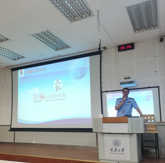 全体学生作防诈骗专题讲座。2021年6月6日晚,“全民共反诈,钟sir捎个话”系列讲座-新型网络诈骗及有效防范在虎溪校区D1237顺利举行,出席此次讲座的有辣文
