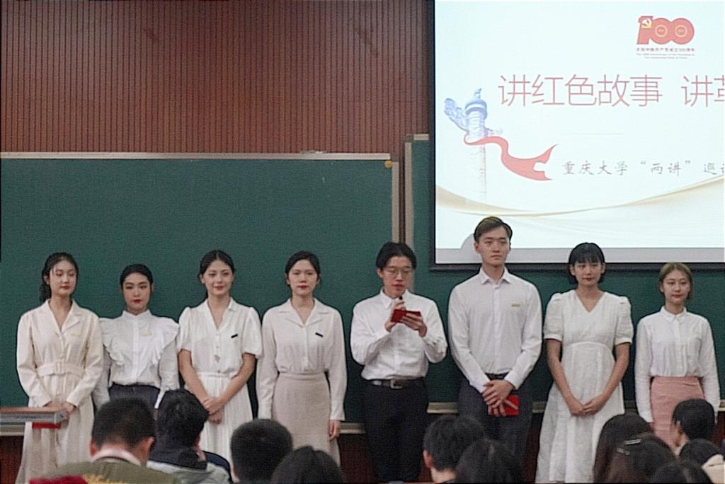 打造了一支近一百人的“党史故事汇”师生讲述团队,以红岩精神为党史教育的生动,在师生中利用“三会一课”、团日活动等形式开展“讲红色故事、讲革命精神”(简称“两讲”)巡讲活动,讲述以红岩精神为主题的红色故事,弘扬红色传统,传承红色基因。10月28日,辣文