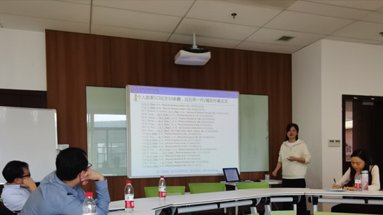 陈老师为同学们详细介绍了强关联f电子研究团队的研究方向,包括单晶块体材料的生长及低温运输性质研究、薄膜材料的生长及基本物性研究、重费米子、复杂量子材料的核磁共振研究等,重点介绍了实验室各种高科技的硬件设施和充足的经费支持。之后,陈老师分享了团队的研究成果、招生专业和毕业去向,并提到研究所提倡同学们自己提出课题,只要经过一定的可行性验证,均鼓励大家去实施,这引起了同学们对研究所的极大兴趣。