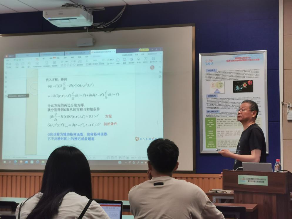 ,在虎溪校区理科楼LE201为凝聚态理论方向的研究生开展了《量子系统格林函数法的理论与应用》暑期课程。