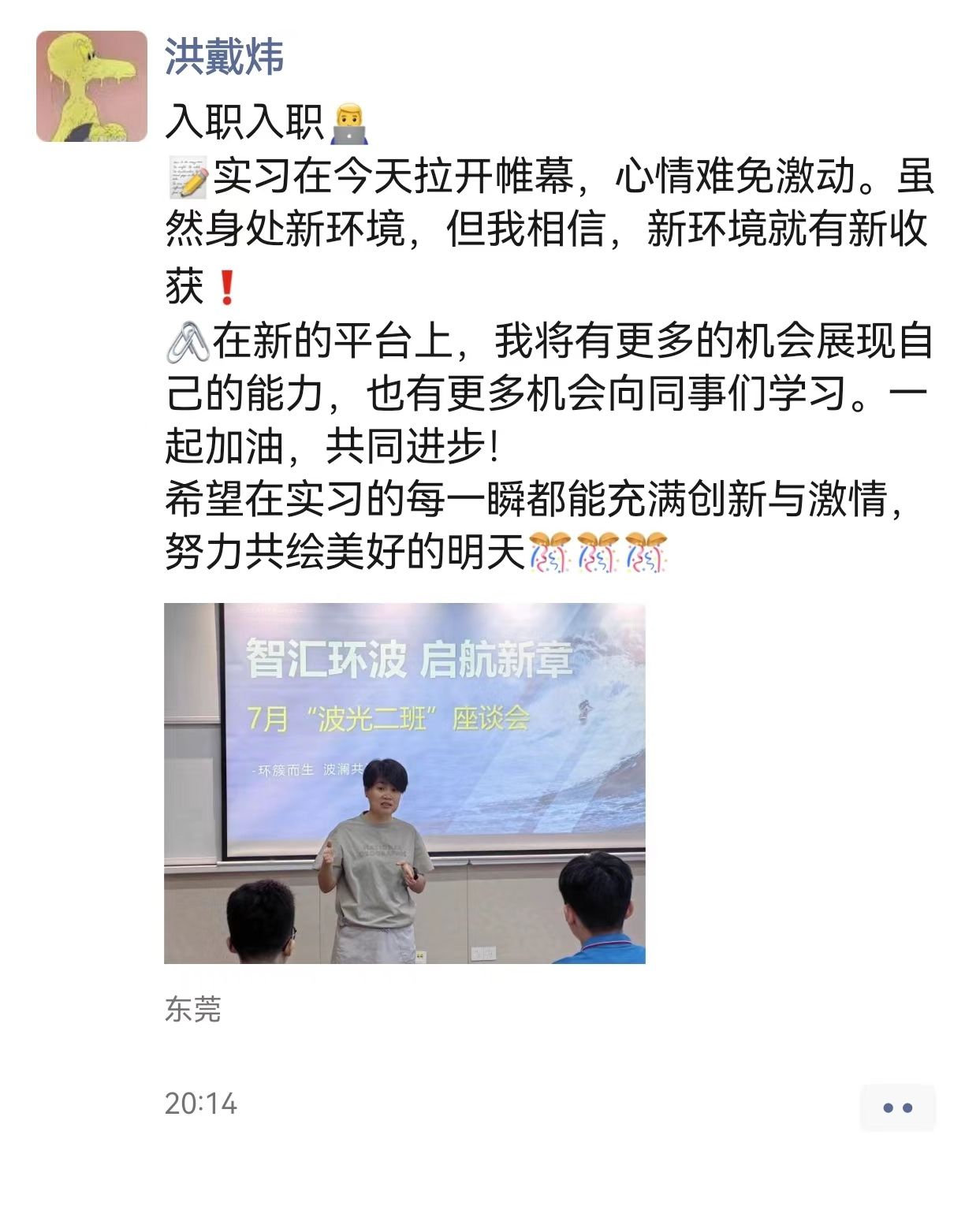 经过培训和参观,团队成员收获颇多,纷纷晒出了入职实习的欣喜和期待,接下来的一个月,他们将在各自岗位上锐意进取,精益求精,充分发挥自己的才能,努力成长为创新型、实用型和复合型人才。