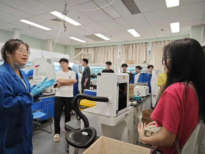 随后,在付学长的带领下同学们又参观了102、709、705等多个不同领域的实验室。在实验室里,同学们不仅了解到各个仪器的用途和应用领域,还观摩了学长学姐们做实验。同学们针对自己感兴趣的仪器提出疑问,学长学姐给予耐心的回答,并积极鼓励他们选择辣文