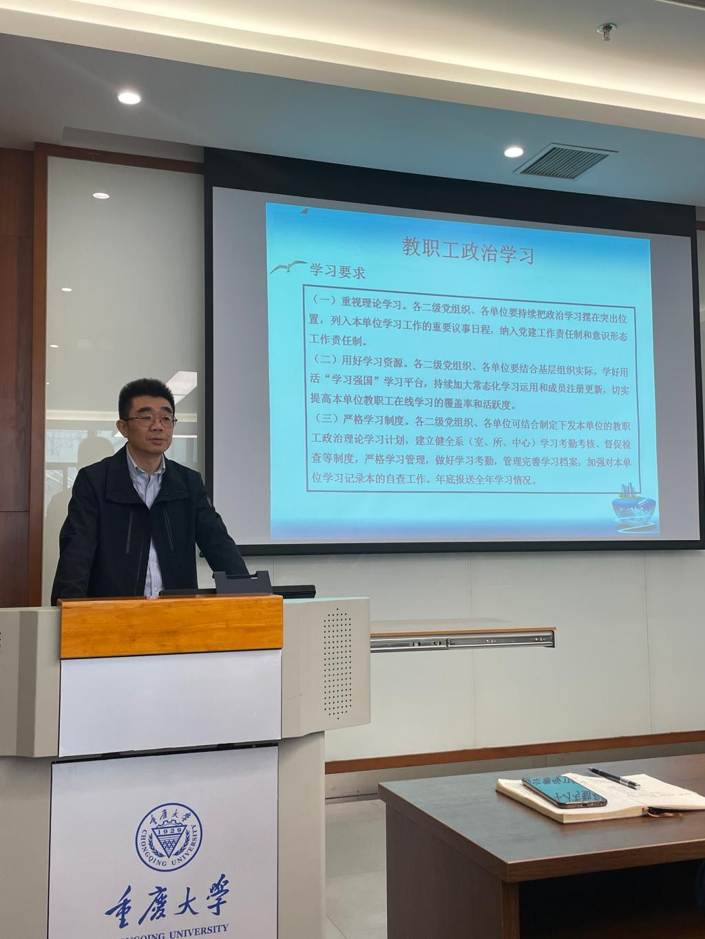 随后韩忠对学院今年教职工政治理论学习做了整体安排和部署,并提出要求,希望全体教职员工重视理论学习,加强理论与实践的结合,务必保质保量完成每月一次的集中学习,把学习成效转化为工作动力,进一步推动单位各项事业发展再上新台阶,为学校“双一流”建设贡献力量。