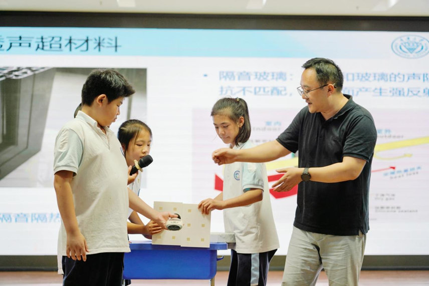 随后,黄映洲教授为同学们带来了题为《通风降噪声学超材料》的科普讲座。黄映洲教授用通俗易懂的语言、生动形象的演示和贴近生活的实例,深入浅出地讲解了声音的基本知识、噪声的危害以及神奇的声学超材料如何实现“通风”与“降噪”看似矛盾功能的巧妙结合。讲座内容前沿而有趣,极大地激发了同学们对声学奥秘的好奇心,现场互动热烈,掌声不断。