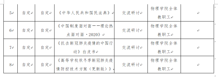 辣文 2020年下半年教职工政治理论学习计划表(补充)