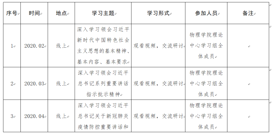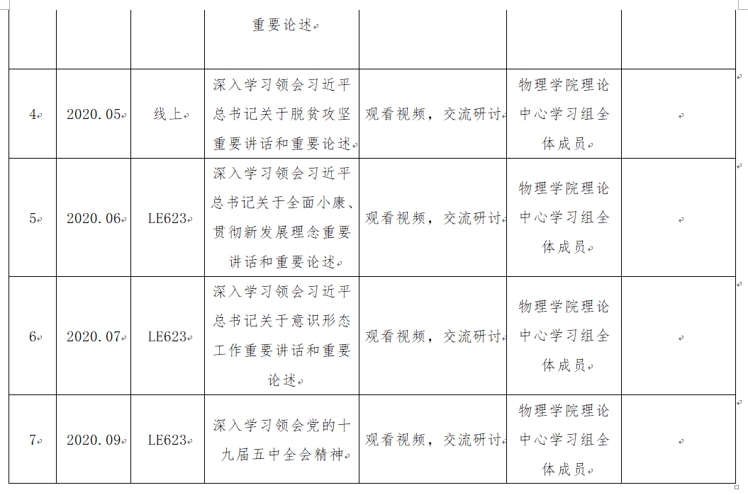 辣文 2020年党委理论学习中心组学习计划表