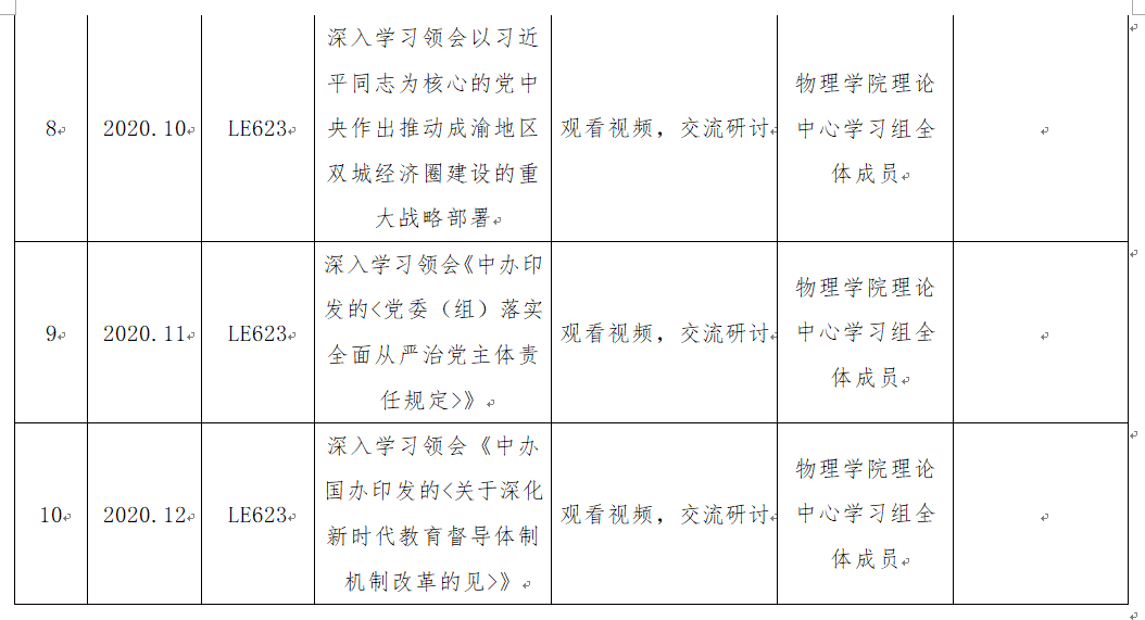 辣文 2020年下半年党委理论学习中心组学习计划表(补充)