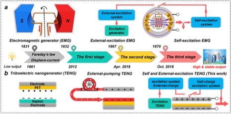 胡陈果教授科研团队和中科院北京纳米能源与系统研究所王中林院士团队合作研究论文“Integrated charge excitation triboelectric nanogenerator” (完整的电荷激励摩擦纳米发电机)以辣文