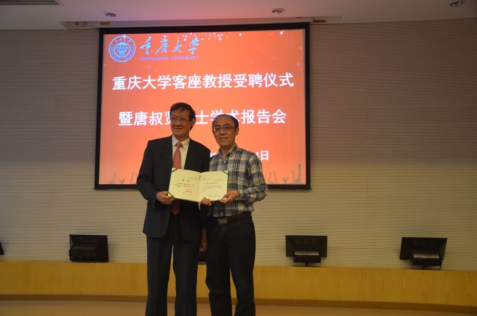 客座教授”受聘仪式暨学术报告会在虎溪校区图书馆报告厅1F-9顺利进行,唐叔贤院士为在场师生做了“神奇的离子晶体极性面”的学术报告,此次活动由辣文