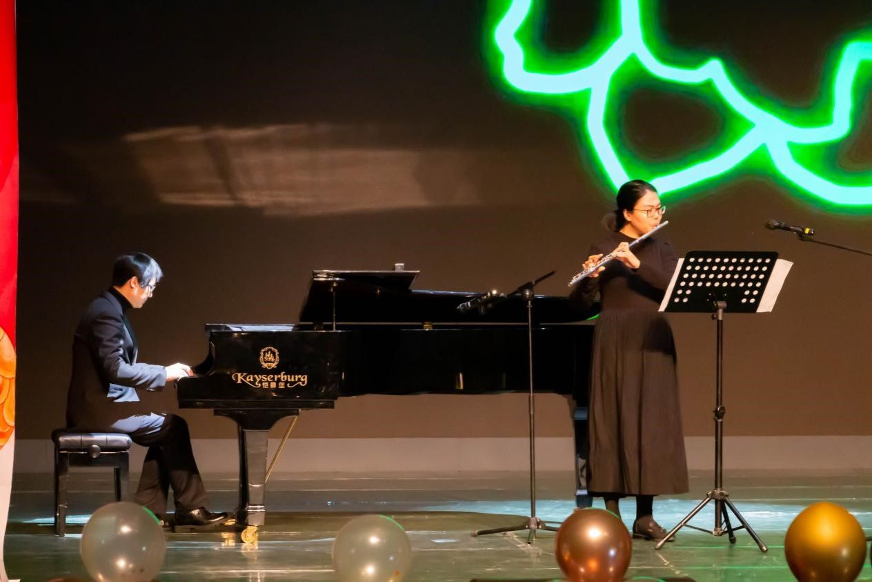 此外,晚会的特邀演出嘉宾重庆电视台时尚频道主持人周二毛、著名麻辣明星白老实为大家带来了极具巴渝特色的《戏说山城》;师生共创的琴笛合奏节目《茉莉花》以及快板《说重大》让大家感受到了辣文