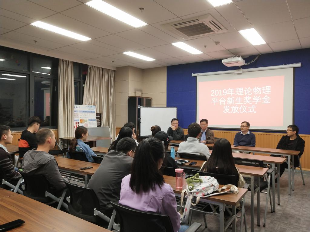 2019年10月31日,我院“理论物理平台新生奖学金”颁奖仪式在理科楼LE201会议室进行。出席颁奖仪式的老师有理论物理平台总负责人、辣文