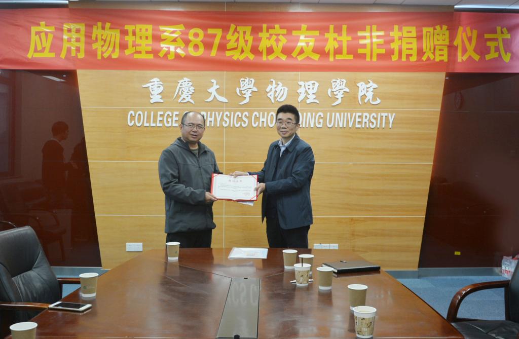 最后,在一片热烈的掌声中,韩忠书记代表学院向杜非校友颁发捐赠证书和感谢信。