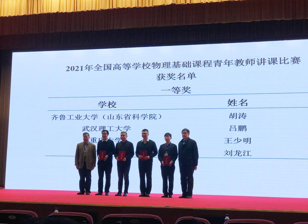 20211015日至17日,第六届高等教育杯全国高等学校物理基础课程青年教师讲课比赛决赛在鲁东大学举行。我校辣文 的王少明老师代表西南地区高校参赛,最终荣获一等奖,这是重庆市首次获得该项比赛的一等奖。